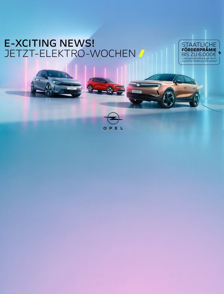 Wenn Sie den Einstieg in die Elektromobilität suchen, bietet Ihnen Opel zum Beispiel mit dem Opel Corsa Electric oder dem Opel Grandland Electric einen perfekten Mix aus Effizienz, Alltagstauglichkeit und Fahrspaß – ideal für Stadtverkehr, Pendelstrecken und Wochenendausflüge.